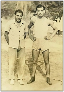 Carlos Arturo Rendón (derecha) fue campeón y récord nacional en 400 metros planos en el año de 1941. Su entrenador Félix Siliézar. Su marca estuvo vigente por 25 años.