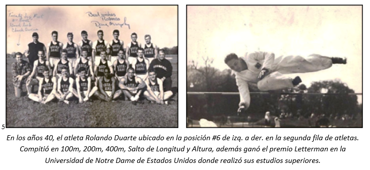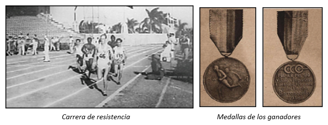 «Félix Siliézar, entrenador principal de atletismo y Carlos Arturo Rendón, campeón Nacional de atletismo en la difícil prueba de 400 metros planos con el tiempo oficial de 52.4 en el estadio Nacional en 1941».