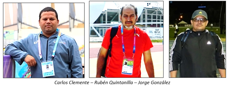 - Carlos Rigoberto Clemente Flores –Cali, Colombia 2022 (Media Staff World Athletics) / Belgrado, Serbia 2024 (Area Técnica-Logística) / Lima, Perú 2024 (U20) (Media Staff World Athletics)